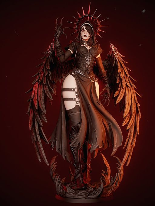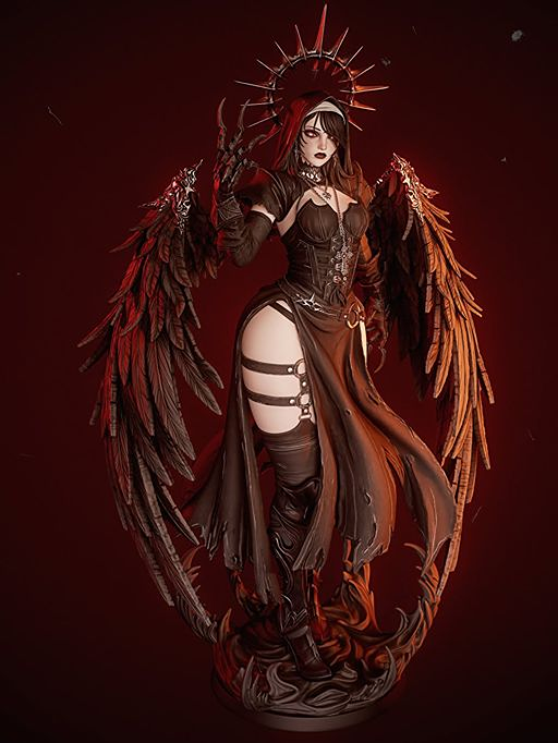 Step into a world of dark elegance with this Corrupted Nun Dark Angel 3D printed resin statue by BAKA Studios. This visually stunning collectible blends gothic horror with fantasy artistry, capturing a powerful and mysterious figure in a commanding pose.