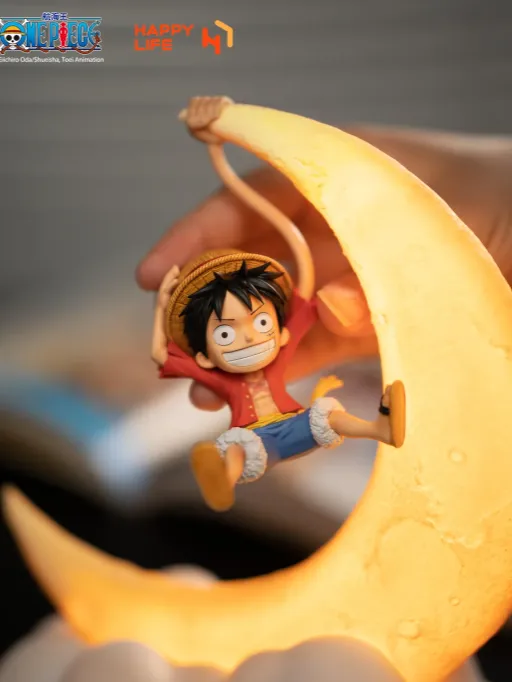 Designed with a detailed Luffy figure sitting on a glowing crescent moon, this lamp creates a floating swing illusion that instantly grabs attention. The warm ambient LED light makes it perfect for bedrooms, gaming setups, desks, or gifting.