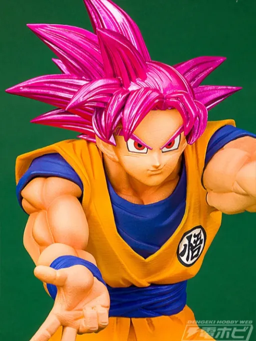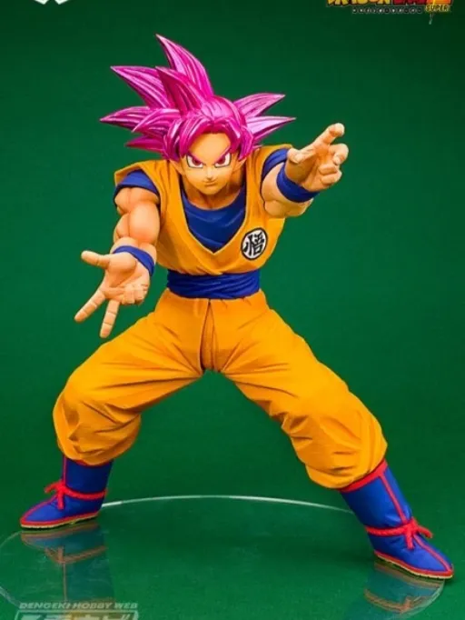 Original Ichiban Kuji Goku Super Saiyan God figure (no box). Features vibrant pink hair, dynamic pose, and high-quality detailingāperfect for collectors on a budget.
