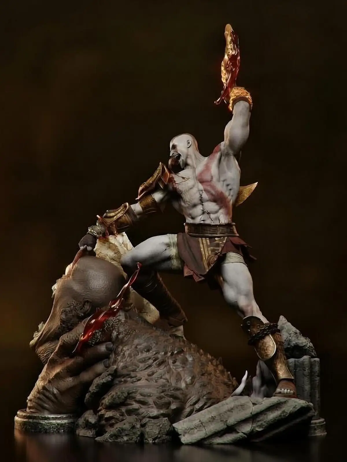 Premium Kratos resin statue in brutal battle pose. 1/6 scale, 3D printed and hand-painted by Baka Studios. Limited edition collectible.