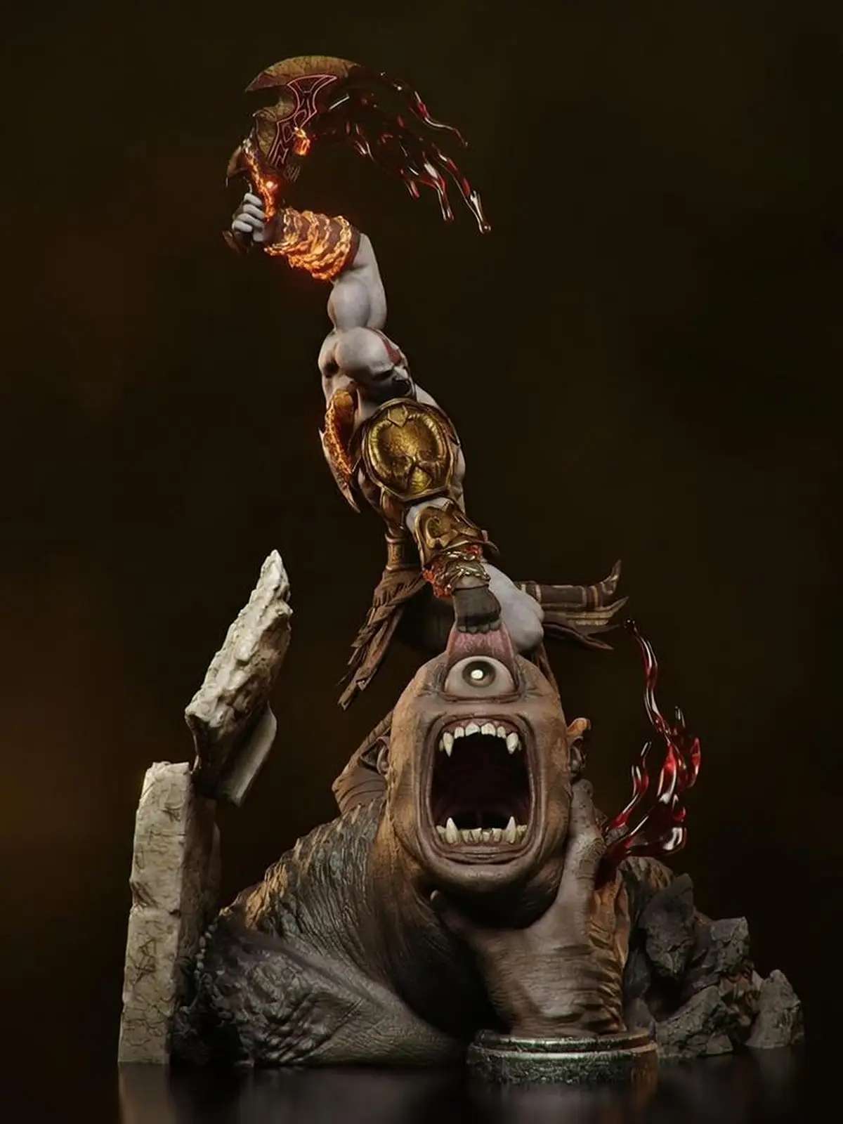 This 1/6 scale Kratos statue captures pure, unfiltered rage. Standing atop a defeated monster, Kratos raises his weapon for the final blow ā muscles tensed, veins exposed, fury etched across his face.