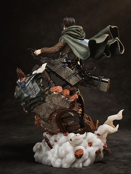 A dynamic Levi Ackerman collectible statue featuring high-detail sculpting and action pose, perfect for Attack on Titan fans and collectors.