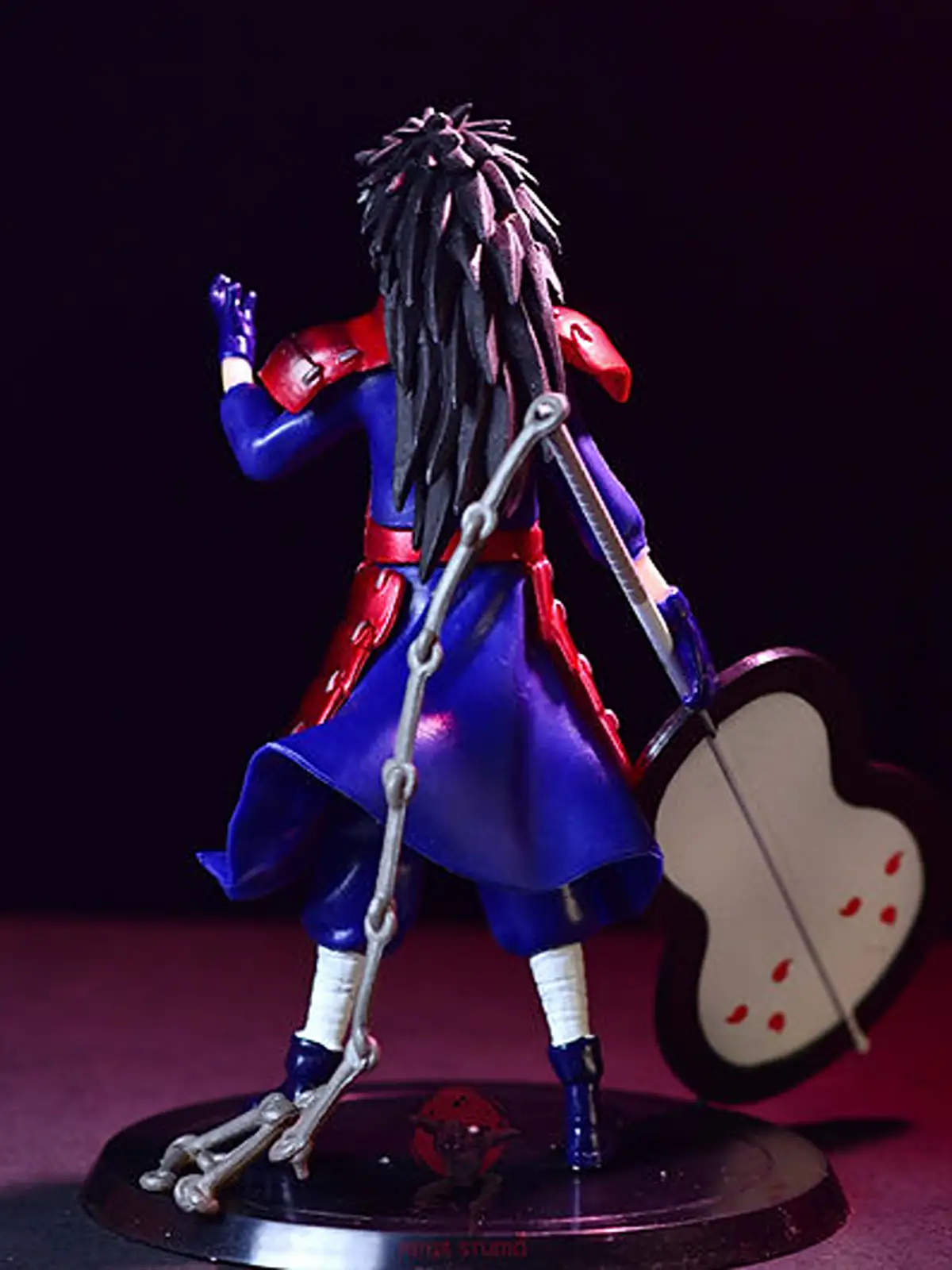 Detailed Madara Uchiha war armor figurine featuring his iconic red samurai armor and gunbai weapon. A premium Naruto collectible perfect for anime figure collectors.