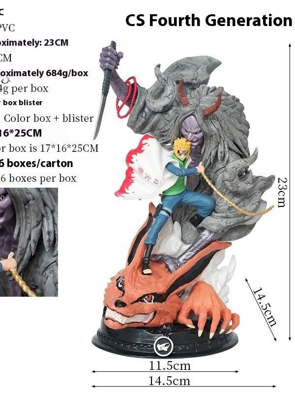 Witness the ultimate sacrifice. This incredibly dynamic statue showcases the Fourth Hokage, Minato Namikaze, as he performs the Reaper Death Seal, standing against Kurama with the Shinigami at his back.