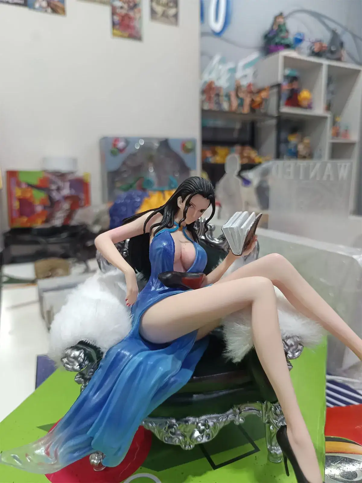 Bring home the elegance and intellect of Nico Robin with this detailed figure, featuring her in a flowing blue dress, lounging in style with a book in hand