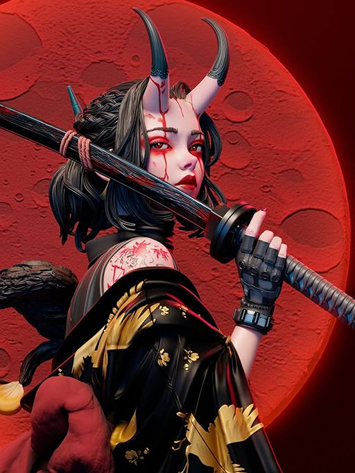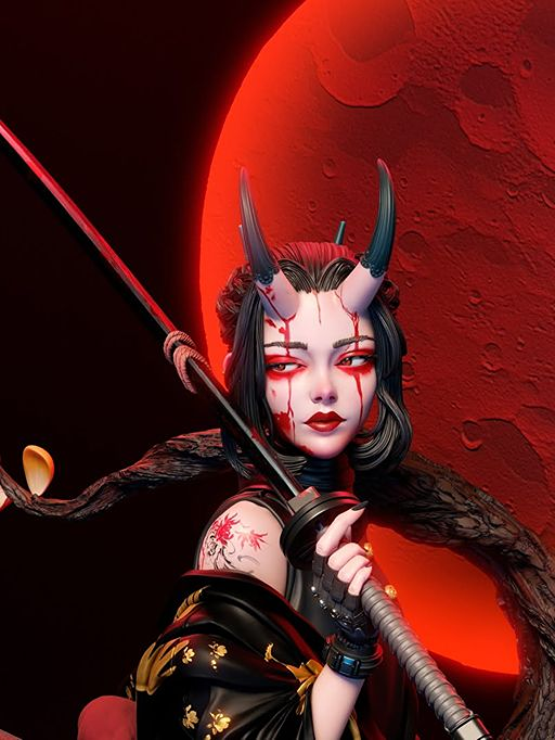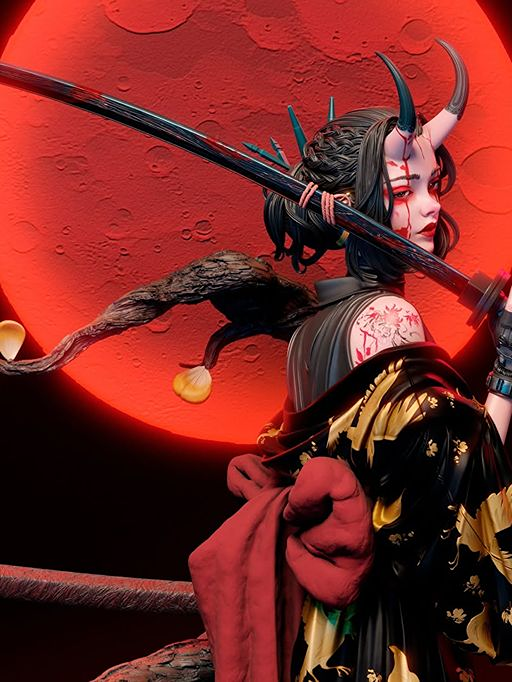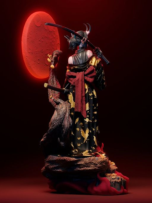 Step into a world of beauty, mystery, and power with this breathtaking One Grace and Tear 3D Printed Resin Statue by BAKA Studios. Blending traditional Japanese aesthetics with dark fantasy elements, this statue captures a graceful yet deadly warrior poised under a glowing crimson moon.