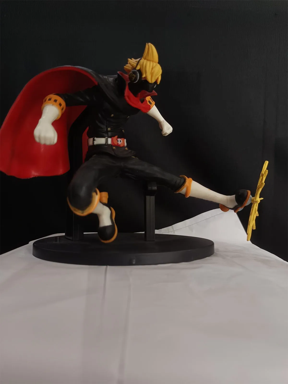 Experience the sheer drip and power of Vinsmoke Sanji like never before. Rocking his Stealth Black raid suit straight from the Germa 66 transformation, this figure showcases Sanji in an epic aerial attack pose, flaming speed boosters on full display, and the signature red cape billowing like a royal flag of destruction.