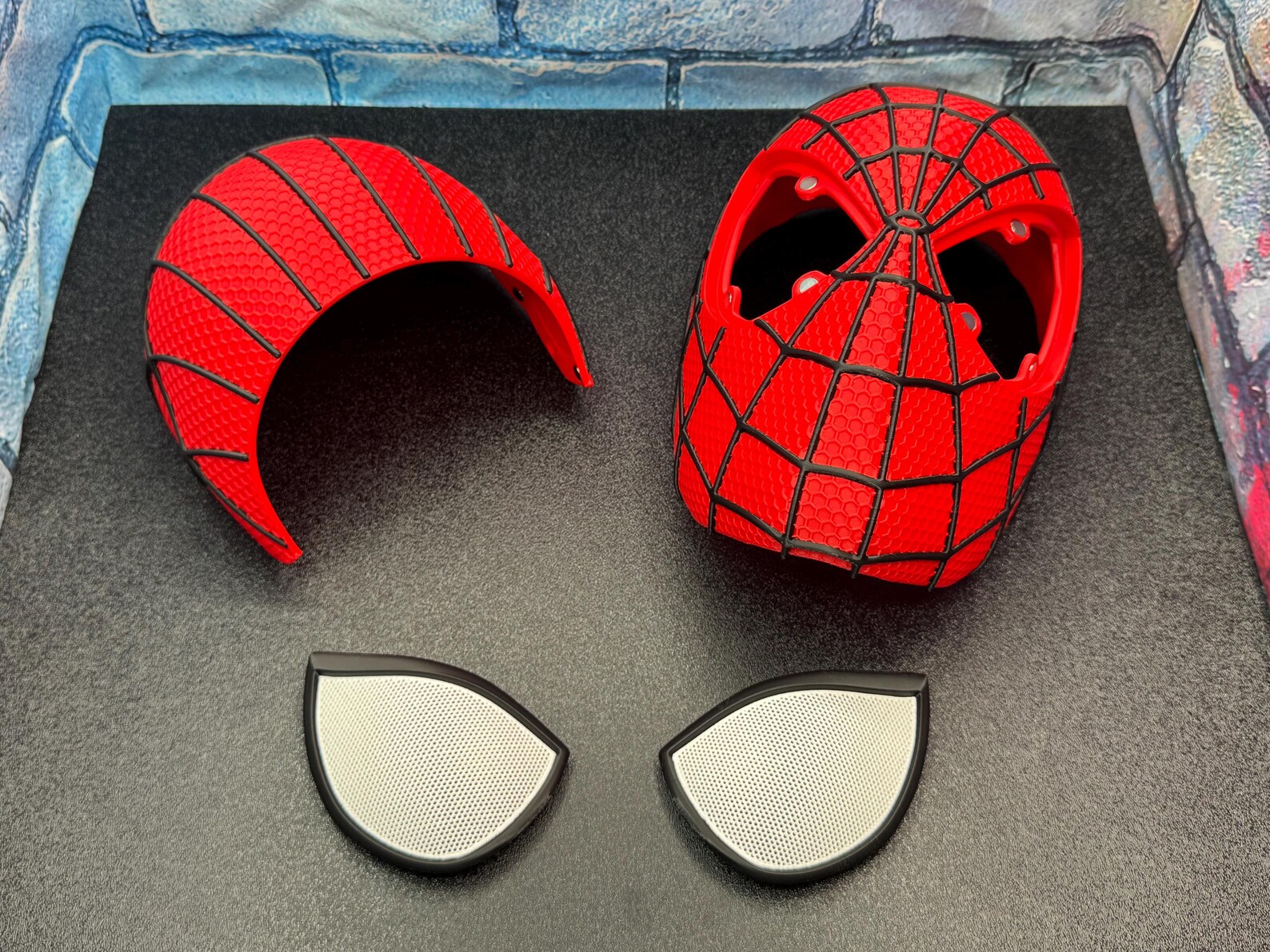 This premium quality Amazing Spider-Man 2 mask is crafted using high-precision 3D printing, featuring a highly detailed red textured finish with the iconic web pattern. The large, crisp white lenses deliver the signature expressive Spider-Man look, making it the perfect finishing touch for a screen-accurate Spidey suit. Designed with a solid, structured build, it offers a realistic shape ideal for cosplay, display, and photoshoots.