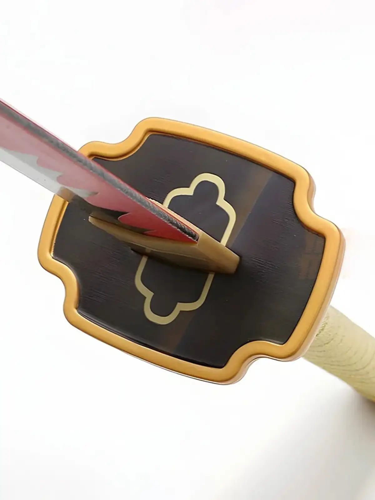 Crafted from high-quality wood, this katana is non-sharp and safe, making it ideal for cosplay, anime displays, photoshoots, and collectors. The elegant gold-toned guard, textured handle wrap, and glossy black scabbard give it a premium, anime-accurate appearance.